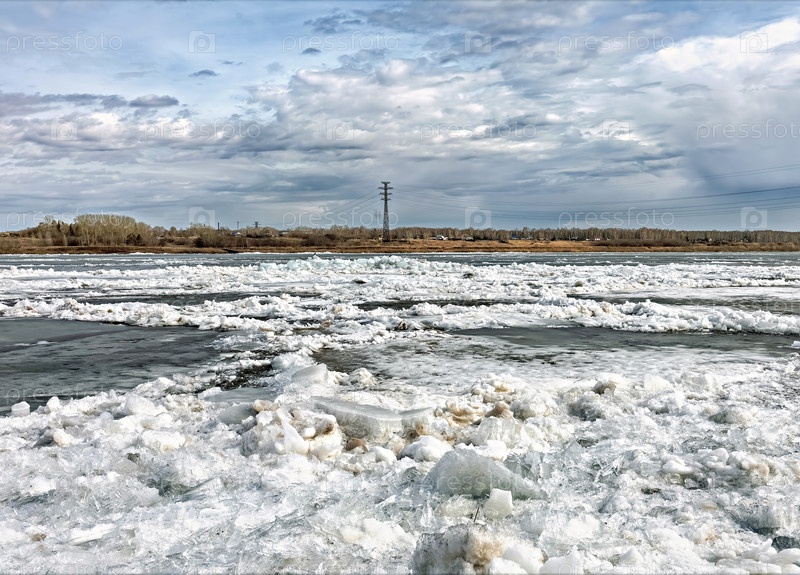 Ледоход на реке Томь. Кемеровская область , в районе города Юрга