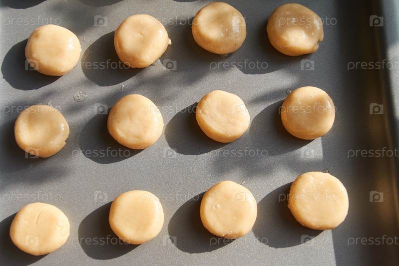 Печенье печенья тесто шарики на листах для выпечки Unbaked
