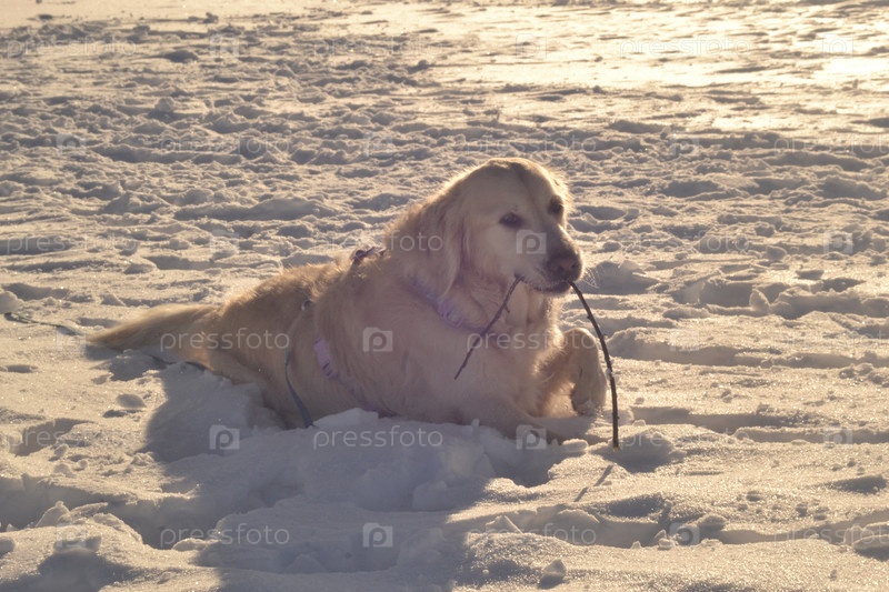 Золотистый ретривер на зимней прогулке