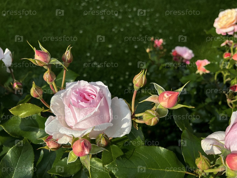 Розовые розы цветут в ярком саду во время солнечного осеннего дня