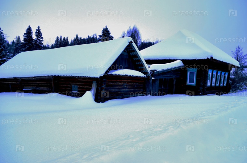 Дом в деревне зимой