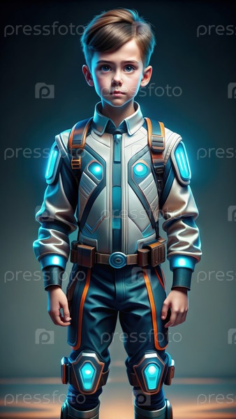 Футуристический школьник, стоящий в студии
