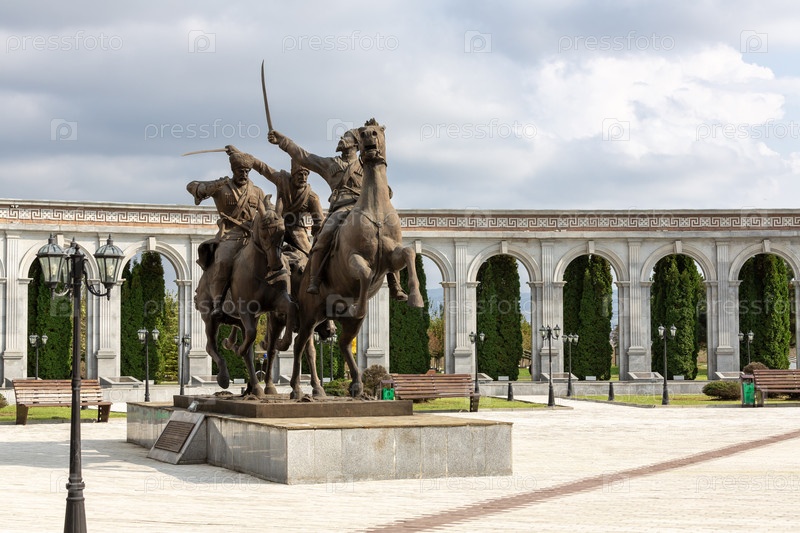 Конные статуи в мемориальном комплексе "Мемориал памяти и славы" в Назаране