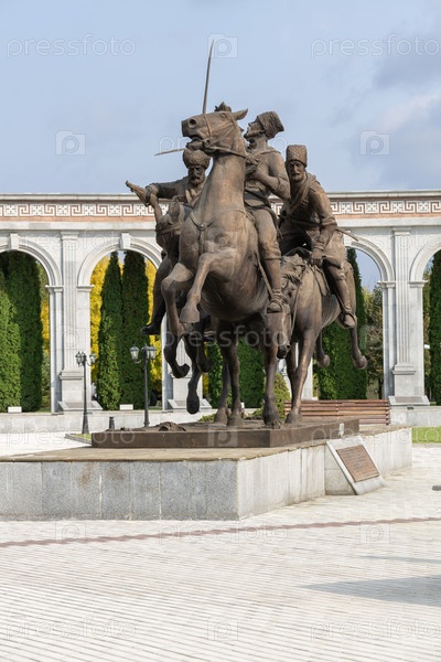 Конный памятник ингушскому полку Дикой дивизии в мемориальном комплексе "Мемориал памяти и славы" в Назране, посвященном самым важным событиям Ингушетии