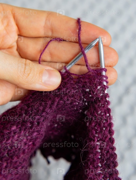 Женщина вяжет шерстяную одежду трикотажные иглы. навыки изготовления одежды из пряжи, хобби медитация