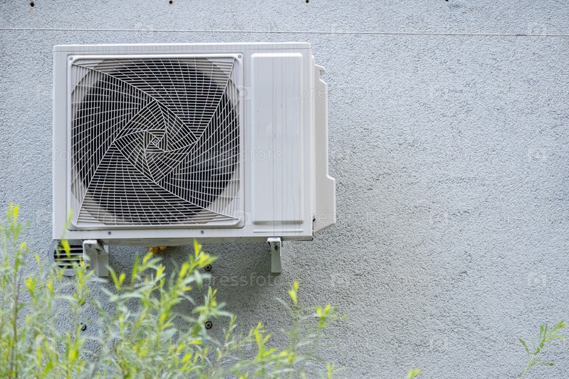 Кондиционер на фасаде здания, охлаждение воздухом в жаркую погоду