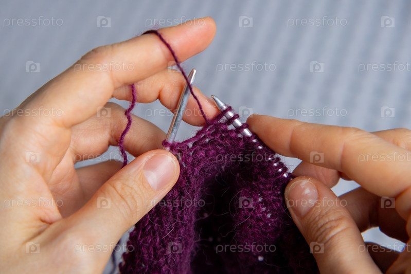 Женщина вяжет шерстяную одежду трикотажные иглы. навыки изготовления одежды из пряжи, хобби медитация