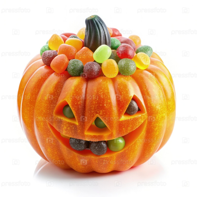 Цветные конфеты из желе заполняют резную тыкву на Хэллоуин