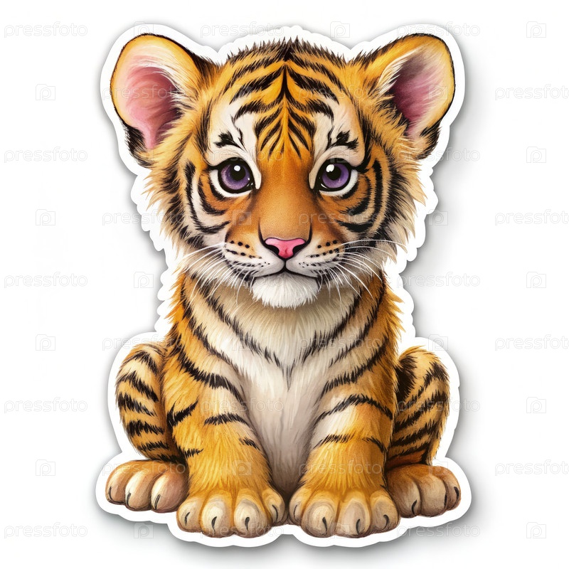 Иллюстрированная наклейка Tiger Cub для использования в стандартной шкале. генеративный AI