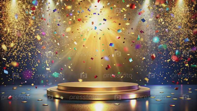 Золотой круглый этап под конфетами и светофорами. генеративный ИИ