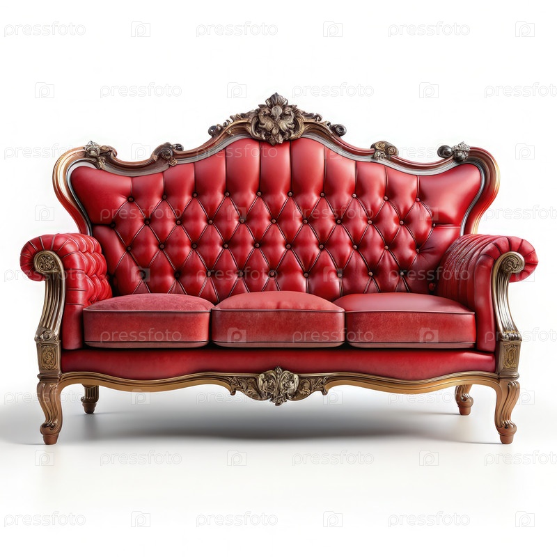Винтажный диван с украшенной резьбой и кнопочным туфтом. генеративная красная ИИ