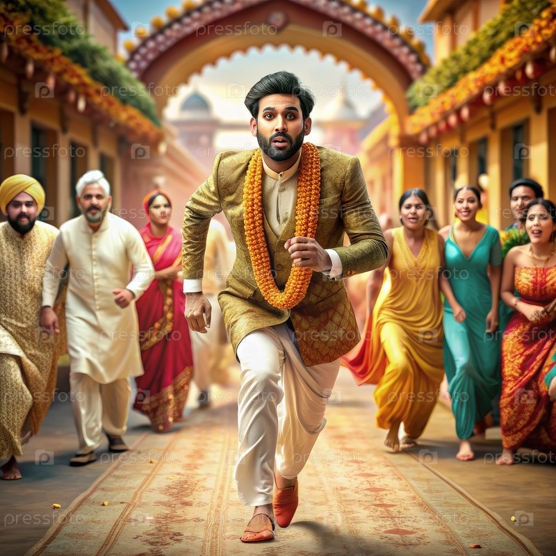 Жених убегает от свадебной церемонии на индийской улице