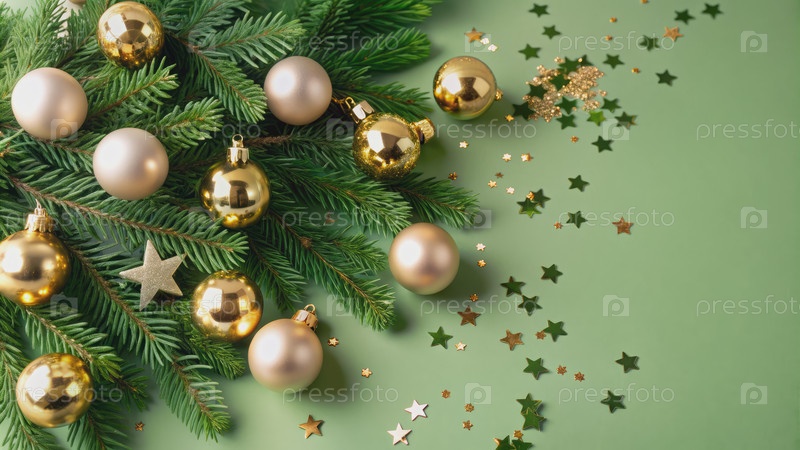 Зеленый и золотой рождественский орнамент со звездными конфетами. генеративный праздничный AI