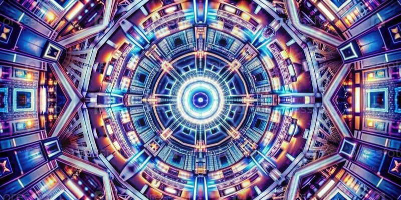 Футуристический калейдоскопический дизайн интерьера космической станции. генеративный ИИ