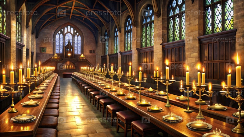 Мультипликационный обеденный зал Хогвартса настроен на грандиозное торжество