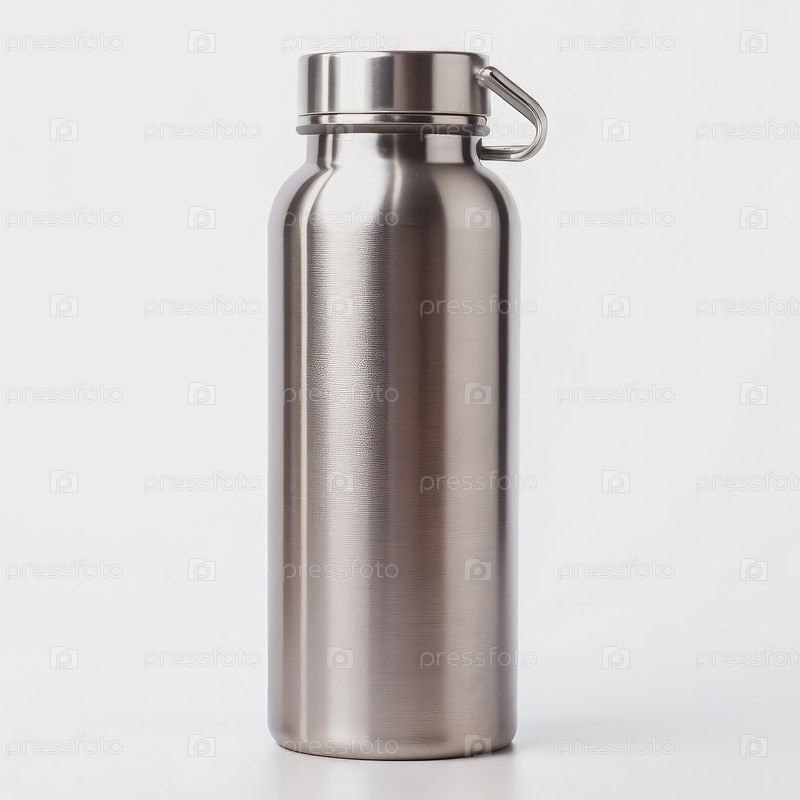 Пустая бутылка с водой из нержавеющей стали на белом фоне