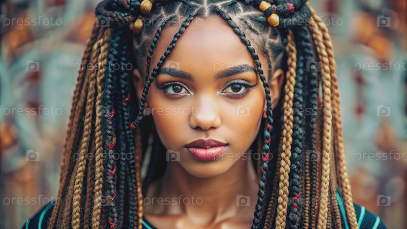 Молодая женщина с сплетенными волосами и бусинками. генеративный ИИ