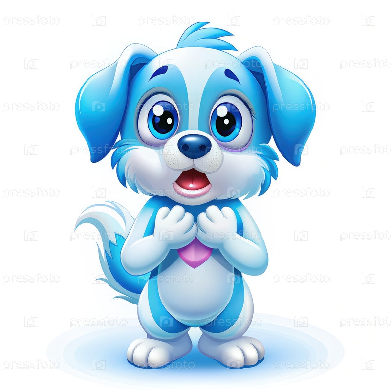 Испуганный синий мультфильм Собака с большими глазами и розовым сердцем