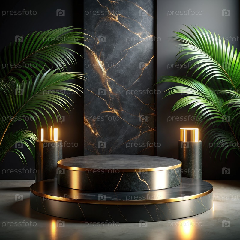 Подиум из черного мрамора с золотыми акцентами для презентации продукта
