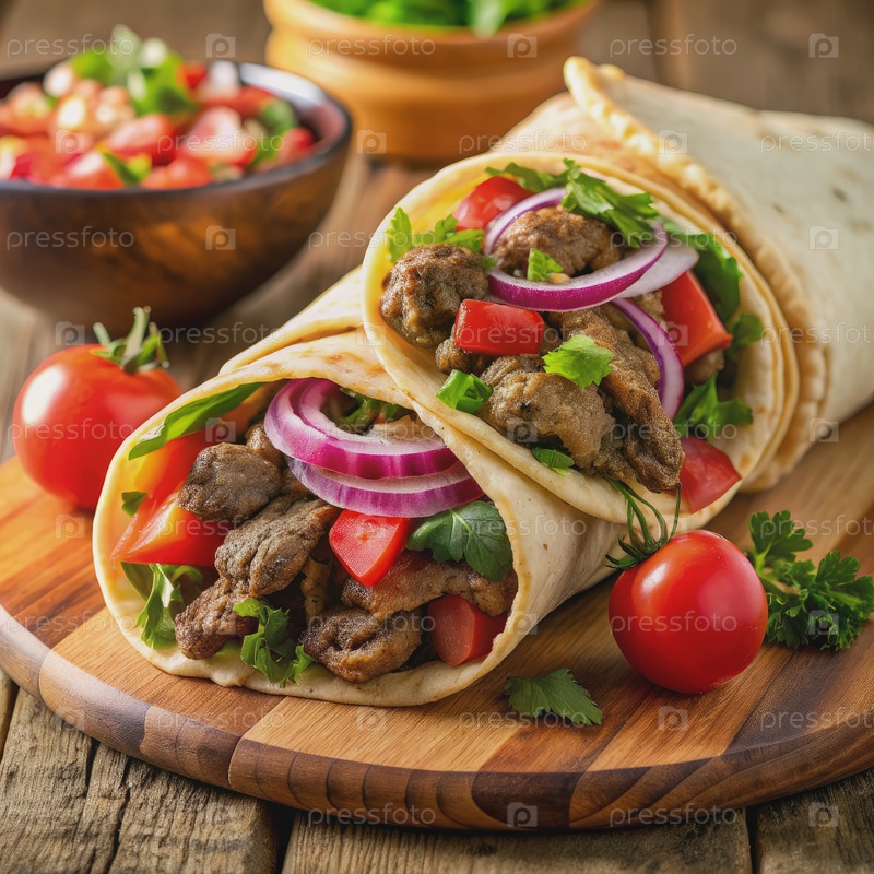 Вкусная арабская шаварма с помидорами, луком и травами