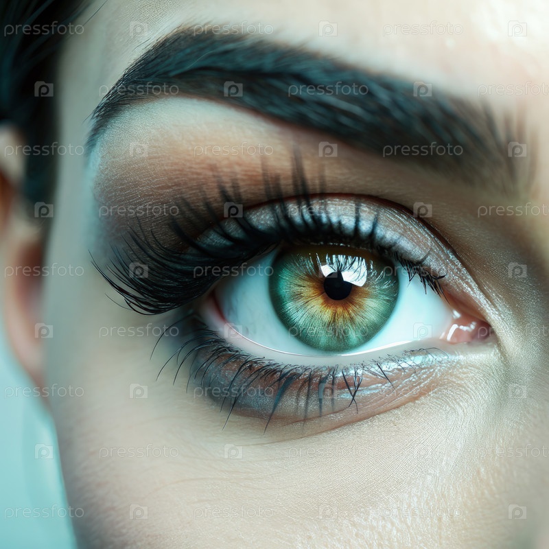 Ближайшее изображение красивого зеленого глаза женщины с определенными бровями