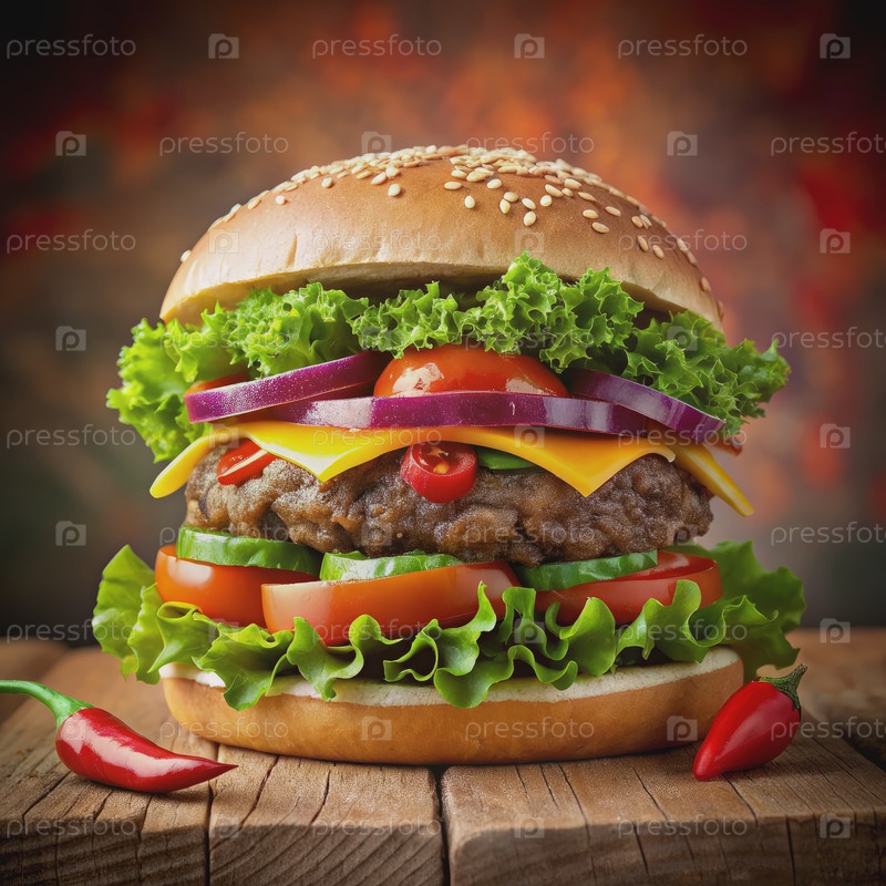 Вкусно заложенный гамбургер со свежими ингредиентами и острым оттенком