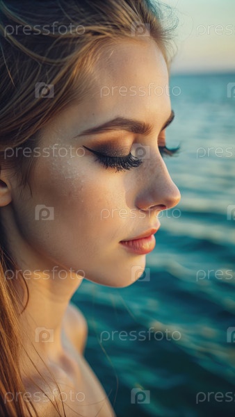 Молодая женщина с длинными коричневыми волосами смотрит на океан