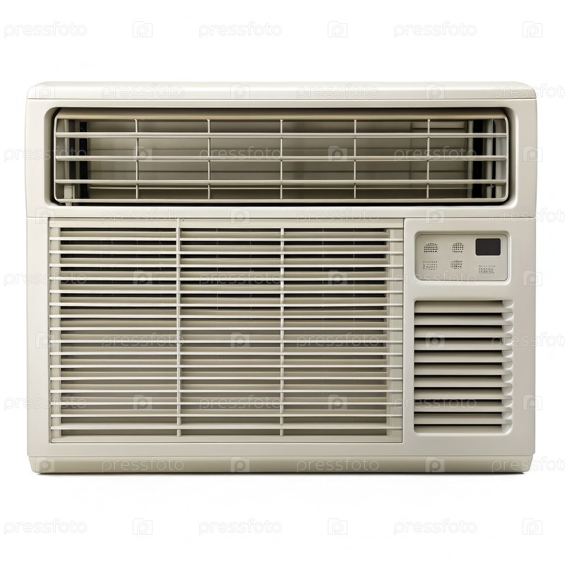 Белый оконный кондиционер с грилями и панелью управления. генеративная ИИ