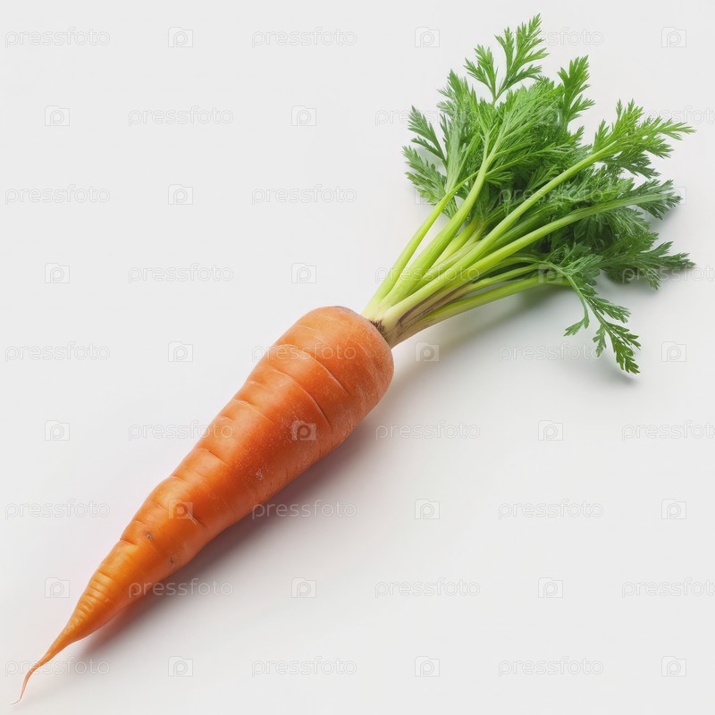 Одинокая свежая морковь с зелеными вершинами на белом фоне