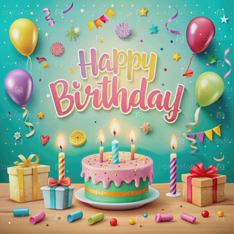 Праздничное празднование дня рождения с тортом и воздушными шарами