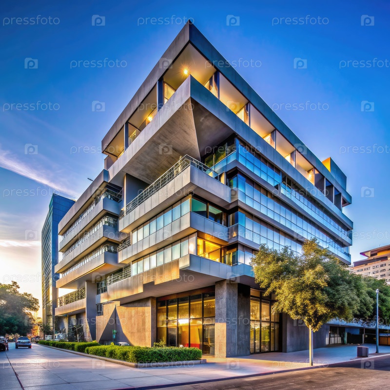 Современное офисное здание на рассвете. генеративный ИИ