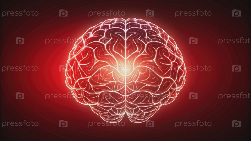 Линейное искусство иллюстрация мозга на красном фоне генеративный простой ИИ