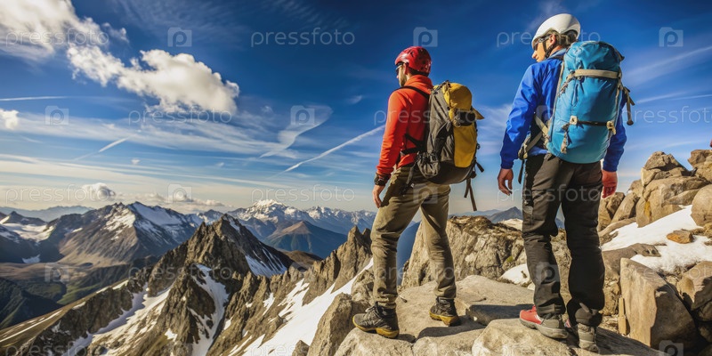 Пешеходы достигают горной вершины, восхищаясь потрясающим альпийским видом