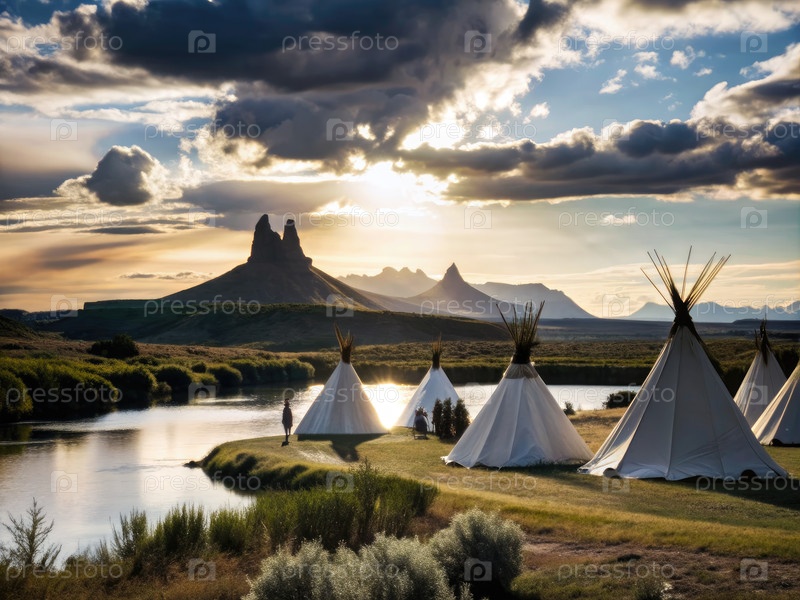 Спокойный закат солнца над индейскими американцами в Бадленде