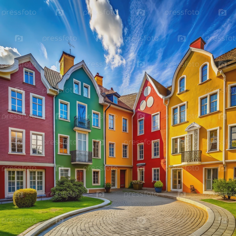 Цветные двухэтажные дома в европейском городе в солнечный день