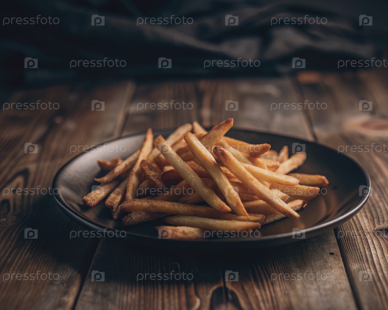 Хрустящие картофельные фри на черной тарелке
