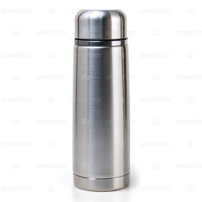 Бутылка термоса из нержавеющей стали, изолированная на белом фоне