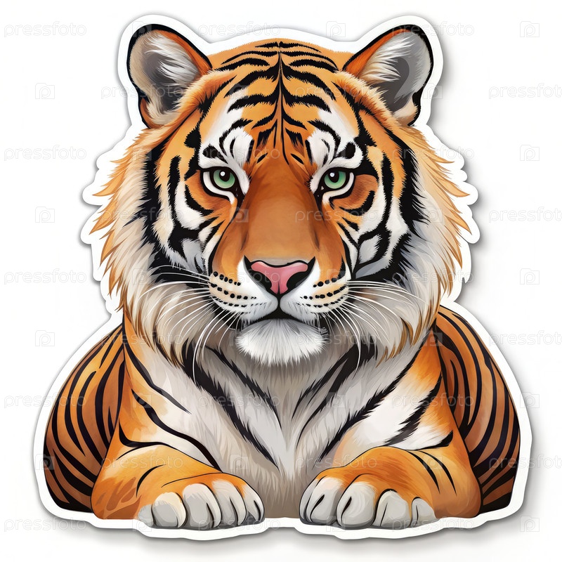 Иллюстрированный дизайн наклейки для тигров в стандартном масштабе. генеративная ИИ