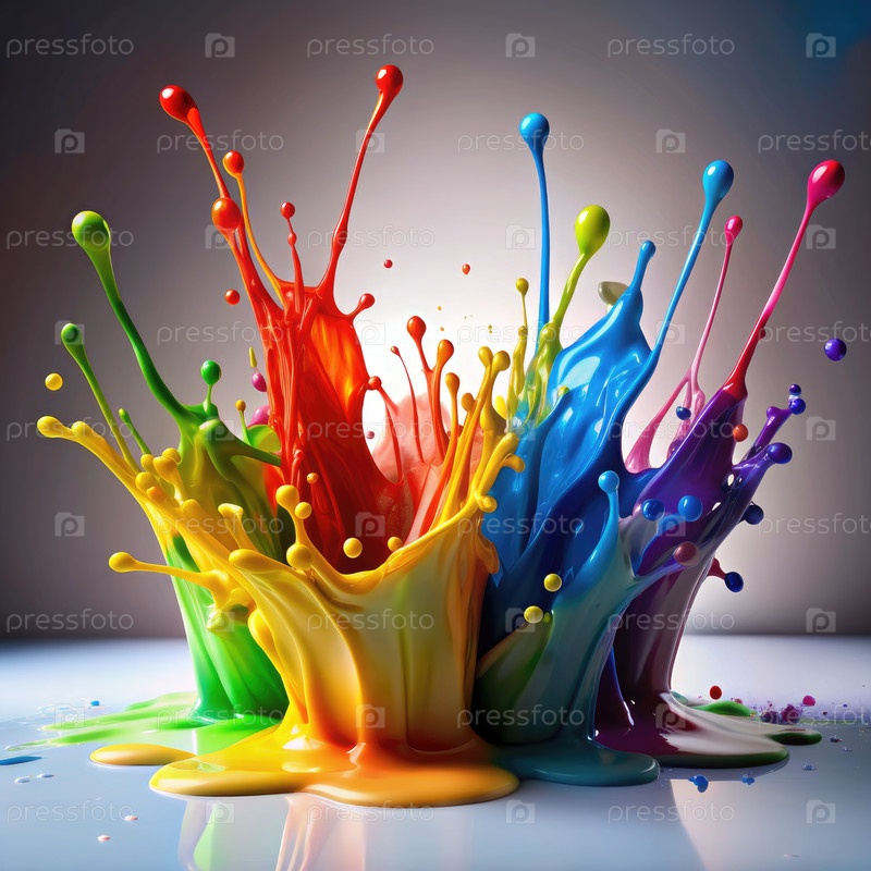 Яркие пятна цветов создают абстрактные произведения искусства на белой поверхности