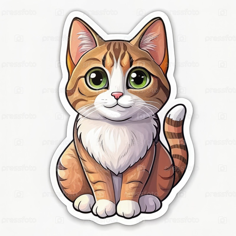 Иллюстрированная оранжевая наклейка Tabby Cat Sitting. генеративный AI