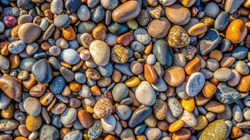 Вид сверху гладких, красочных камней на пляже