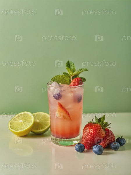 Освежающая клубничная вода фреска с льдом и мятой. генератив AI