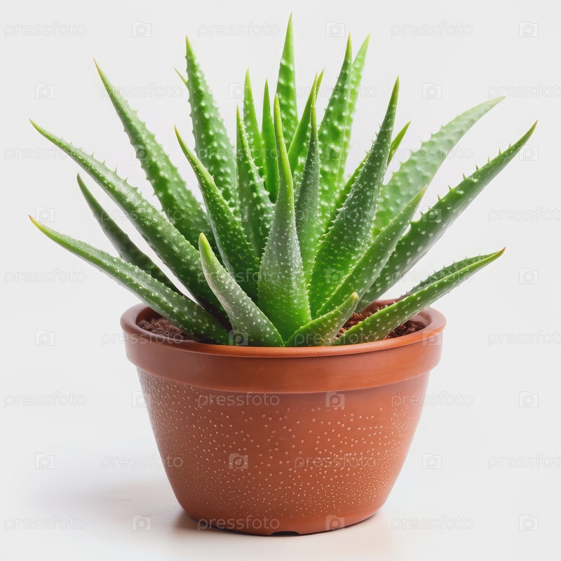 Алоэ Вера растение в коричнево-зеленом горшке на белом фоне