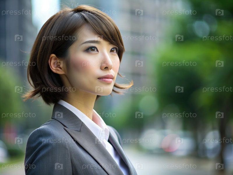 Молодая японская бизнесвуменка, стоящая в городской обстановке