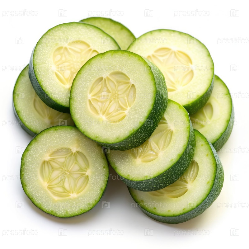 Свежие зеленые ломтики цуккини на белом фоне