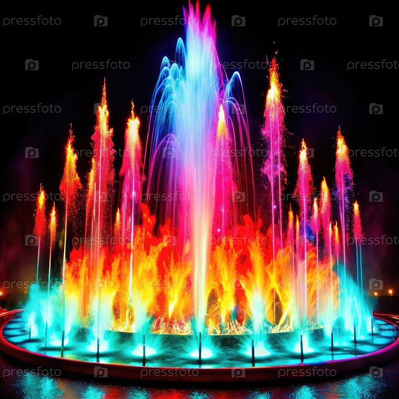 Цветный дисплей фонтана воды ночью в городском парке