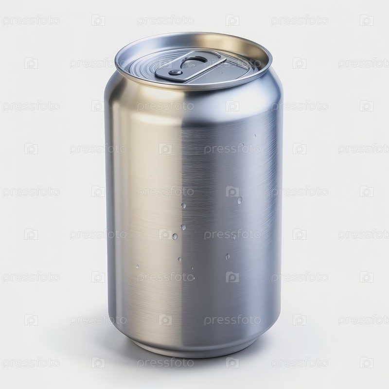 Пустая алюминиевая банка для напитков с конденсацией на белом фоне