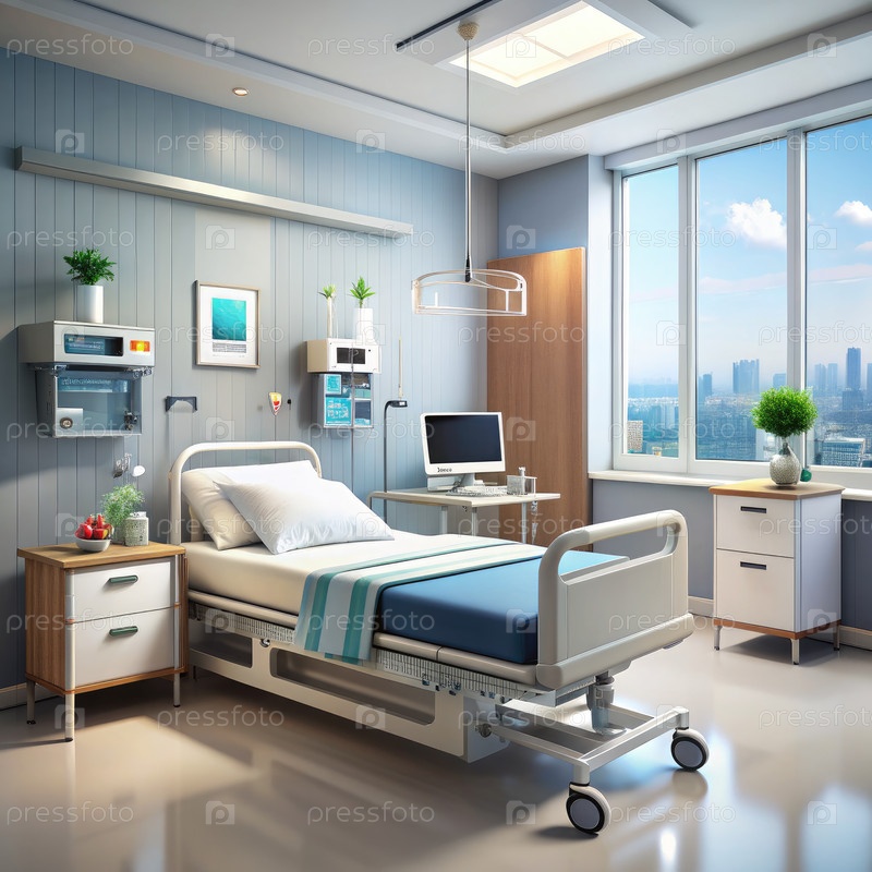 Современная больничная комната с видом на горизонт города