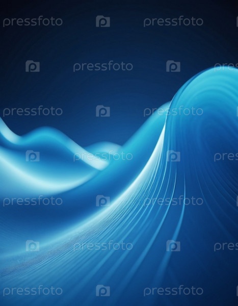 Текущие 3D-синие волны создают абстрактное представление о динамике жидкостей, вызывая спокойствие и глубину в минималистичном дизайне, который повышает цифровое творчество