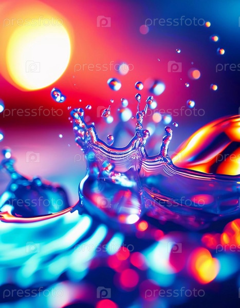 Множество ярких капель вспыхивает в красочном брызге, создавая потрясающий дисплей ярких оттенков на мягко размытом фоне. Замерзающее движение. Красота природы в данный момент. ИИ
